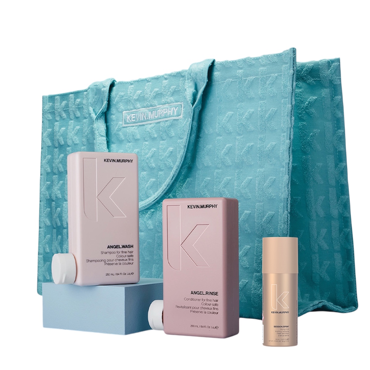 Kevin Muprhy Angel kesäkassi. Sisältää: Angel Wash 250ml, Angel Rinse 250ml ja Session Spray 100ml.