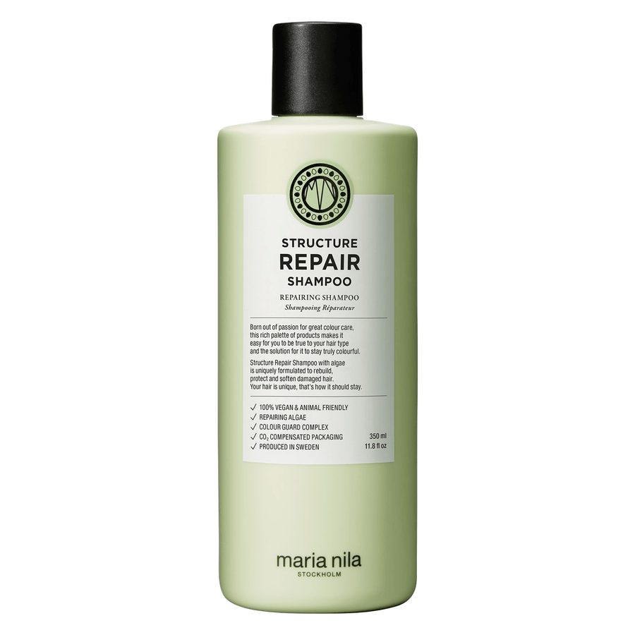 Maria Nila Structure Repair Shampoo on ravitseva ja vahvistava shampoo vaurioituneelle, kuivalle ja käsitellylle hiukselle. Sisältää korjaavaa leväuutetta, joka palauttaa hiusten kiillon, elinvoiman ja pehmeyden. Maria Nila Structure Repair Shampoon sulfaatiton ja parabeeniton koostumus puhdistaa hiukset ja hiuspohjan hellävaraisesti. Tuotteessa on 100 % vegaaniset aineosat. Structure Repair